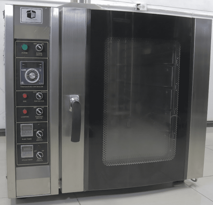 Horno de convección con cuerpo en acero inoxidable. Voltaje 220V 60Hz Panel de control manual. Control de temperatura: 0-350 ° C Función de vapor. Precalentamiento a temperatura de 200 ° C, solo necesita 10-12 minutos. Capacidad para 5 latas europeas (40 x 60). Ideal para panaderías, reposterías y restaurantes.