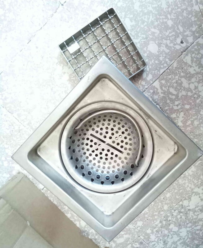 RESUM-0002 RESUMIDERO DIMENCIONES 200X200 MM CON SALIDA VERTICAL DN110, TRAMPA, CESTA PARA DESECHOS Y TAPA