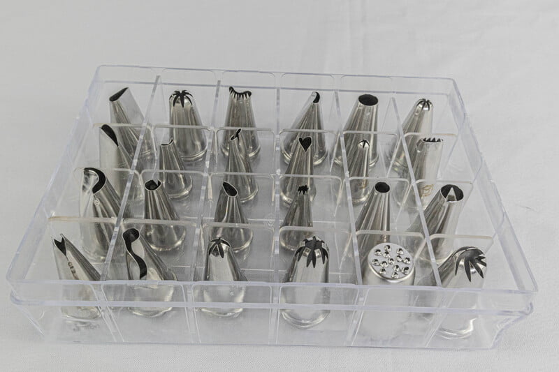 SET DE PUNTAS DECORATIVAS PARA PASTELERÍA Set de 24 boquillas de manga útiles para la decoración de postres y pasteles.