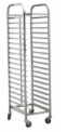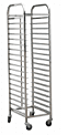 Clavijero de acero inoxidable con capacidad para 15 latas Europeas (40 x 60 cm). Ideal para transportar y enfriar productos horneados, facilitar el movimiento entre áreas de producción, mantener la higiene alimentaria y optimizar el flujo de trabajo en panaderías y pastelerías.