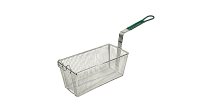 13-1/4" X 6-1/2" X 5-7/8", 10" CANASTA PARA FREIDORA DE MANGO COLOR VERDE CROMADA.