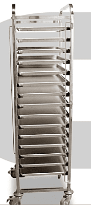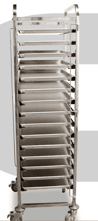 Clavijero de acero inoxidable, con capacidad para 15 latas americanas (46 x 66 cm). Permite mantener las latas de pan ordenadas ayuda en el reposo de enfriamiento de masas al terminar el proceso de cocción. Posee ruedas que permiten una movilidad mas rápida y fácil. Dimensiones de lata : 46x66 cm Tipo : Americana Distribución: 15 niveles 1 lata por nivel