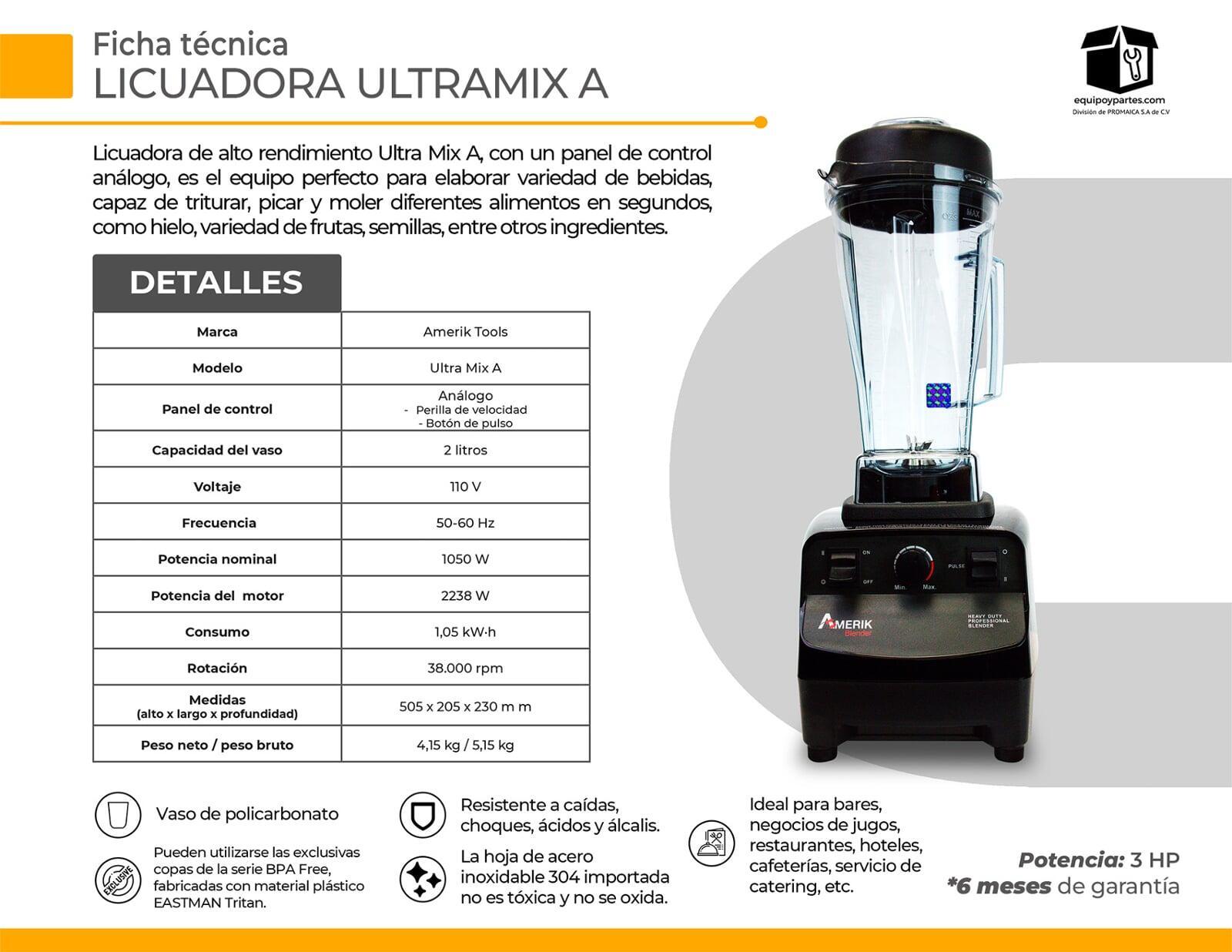 ULTRAMIX-A BLENDER (2L. PC JAR), Licuadora de alto rendimiento con un panel de control análogo, es el equipo perfecto para elaborar variedad de bebida capaz de triturar, picar y moler diferentes alimentos.
