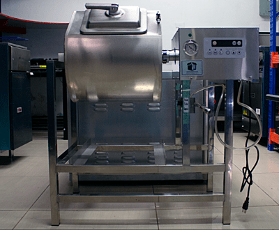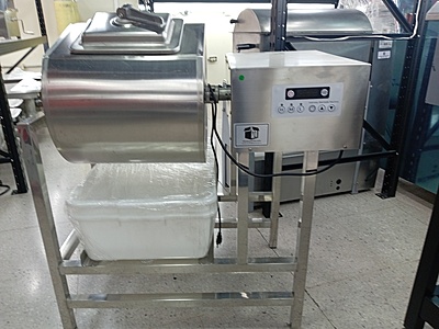 Marinador de carne construido en acero inoxidable. *Capacidad: 25 Lb *Tensión: 110V *Potencia: 0.5 Hp *sin sistema de vacío.