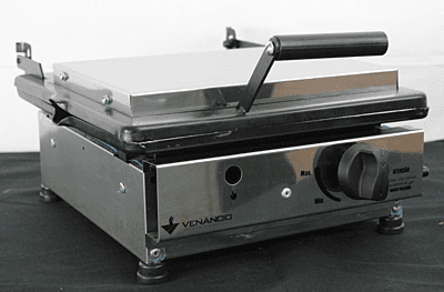 PRENSA SANDWICHERA A GAS. Gas LPG de baja presión; Quemador con sistema de cajones, para facilitar la iluminación; Placa superior estampada en acero al carbono; control individual de los quemadores; Cuerpo externo en acero inoxidable 430; Recipiente recolector de residuos en material plástico súper resistente para facilitar la limpieza; Manipulador con ajuste de 3 posiciones; Orificio frontal para facilitar la iluminación.