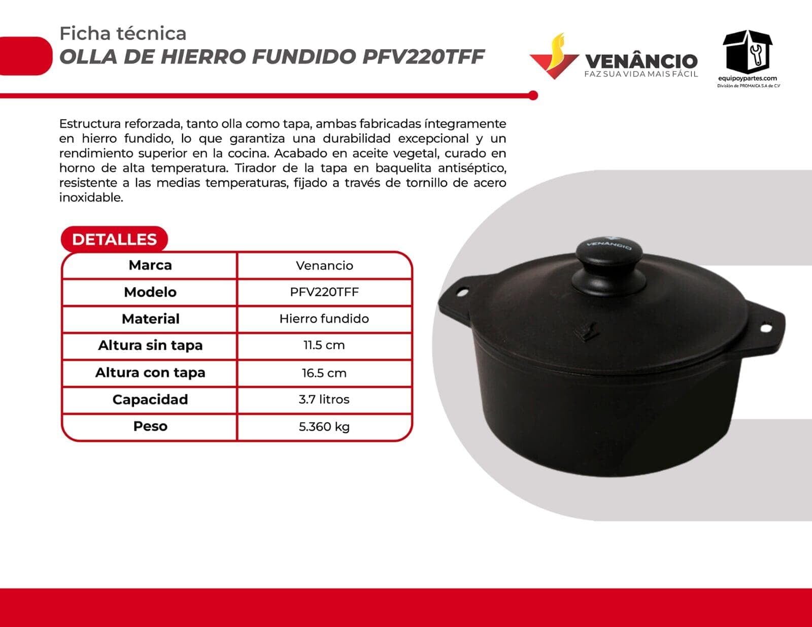 PFV220TFF Olla de hierro fundido con tapa de hierro fundido