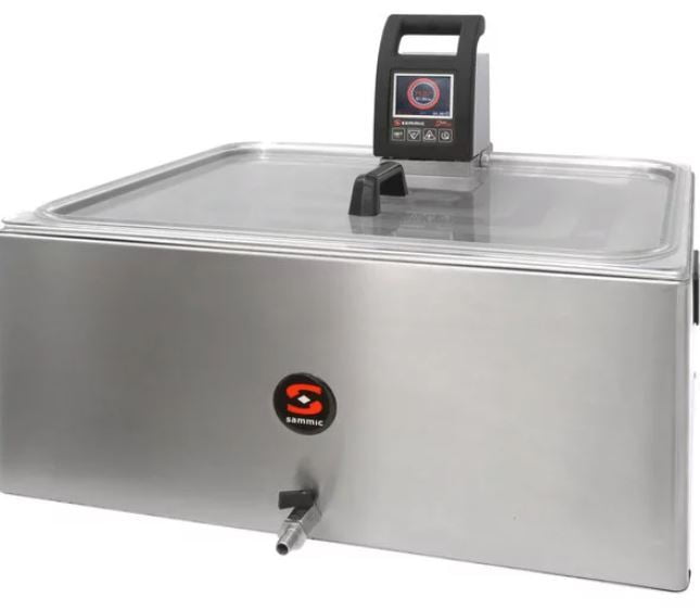 COCEDOR AL VACÍO PROFESIONAL está construido en acero inoxidable. Capacidad de 28 L Sensibilidad de 0.2ºC / Uniformidad de 0.1ºC Tapa para cuba aislada GN 1/1 fabricada en acero inoxidable, especial para el cocedor portátil Smart Vide.