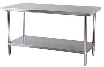 MESA DE TRABAJO DE ACERO INOXIDABLE CON ENTREPAÑO INFERIOR MEDIDAS 1.50 m LARGO X 0.80 m ALTO